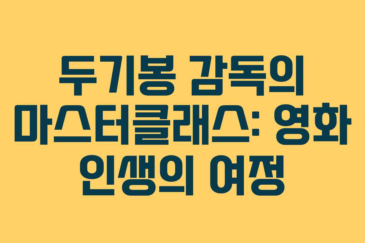 부산국제영화제에서 열린 두기봉 감독의 마스터클래스는 그의 30년 영화 인생을 되돌아보는 소중한 자리였습니다. ‘나의 인생, 나의 영화’라는 주제 아래, 두기봉 감독은 9개의 챕터로 자신의 경험을 나누고 관객들과의 질문과 답변 시간을 가졌습니다.