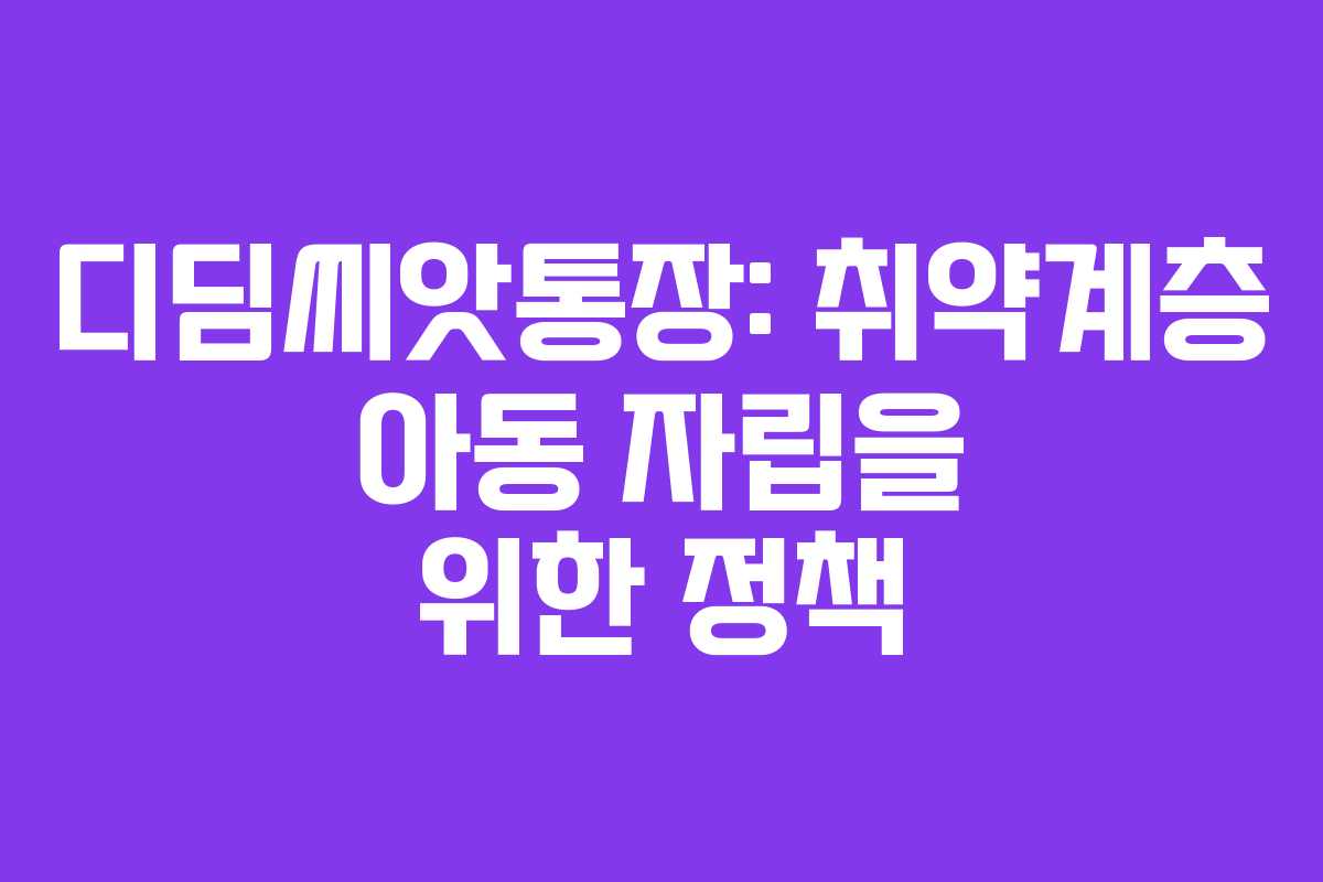 디딤씨앗통장(아동발달지원계좌)은 취약계층 아동의 자산 형성을 지원하는 프로그램으로, 정부와 지자체가 아동의 저축액에 매칭 지원금을 추가하여 자립 자금을 마련하는 방식입니다. 이 통장은 아동이 성인이 되었을 때 필요한 자금을 제공하여 안정적인 사회 진출을 돕습니다.