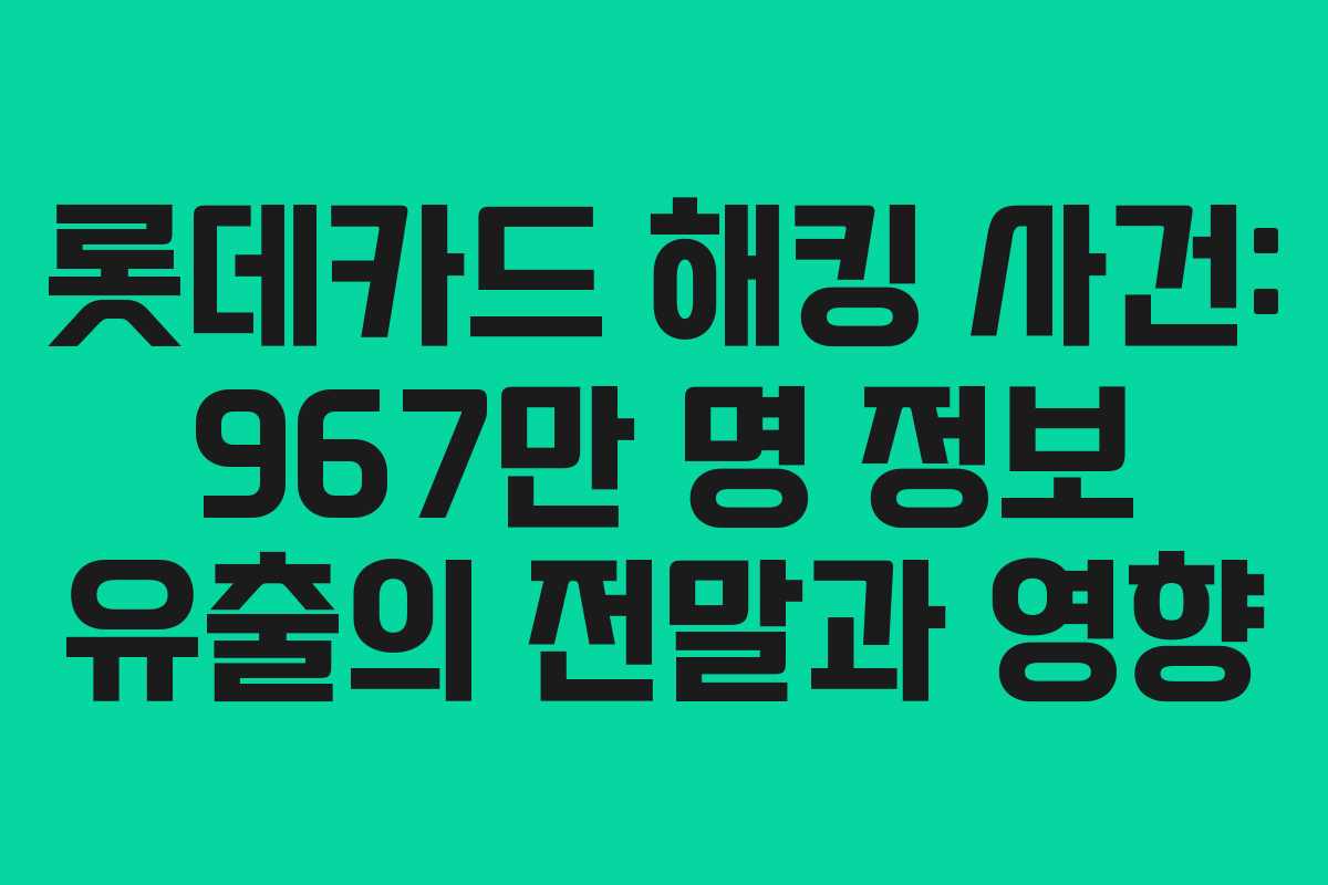 최근 롯데카드의 967만 명 회원 정보가 해커들의 공격에 노출되었다는 충격적인 소식이 전해졌습니다. 이번 해킹 사건은 단순한 기술적 결함을 넘어, 기업의 대응 방식에 대한 국민의 신뢰를 크게 저하시켰습니다. 이 글에서는 사건의 전개 과정과 그로 인한 파장을 살펴보고, 금융 소비자들이 알아야 할 사항을 정리해 보겠습니다.