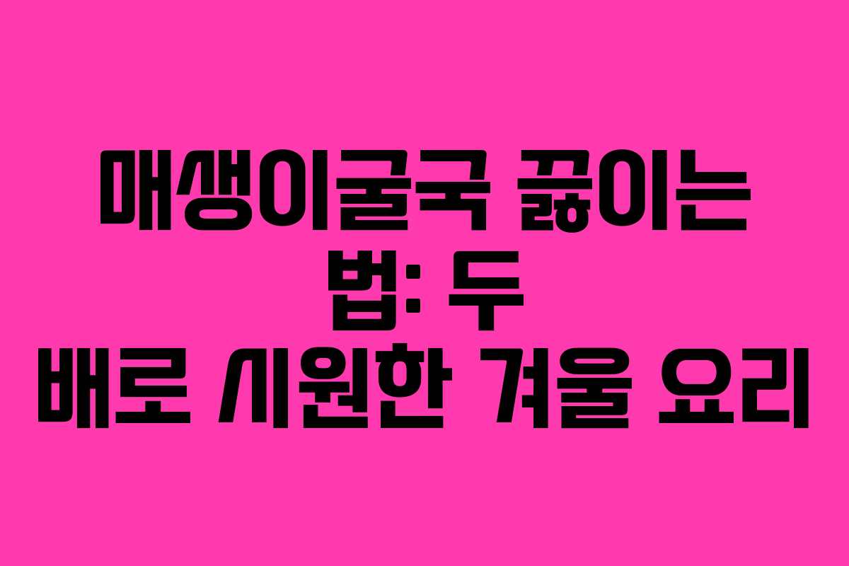 매생이굴국은 간단하게 만들 수 있으며, 겨울철 건강을 챙기기에 안성맞춤인 요리입니다. 따뜻한 국물로 추위를 이겨내세요!