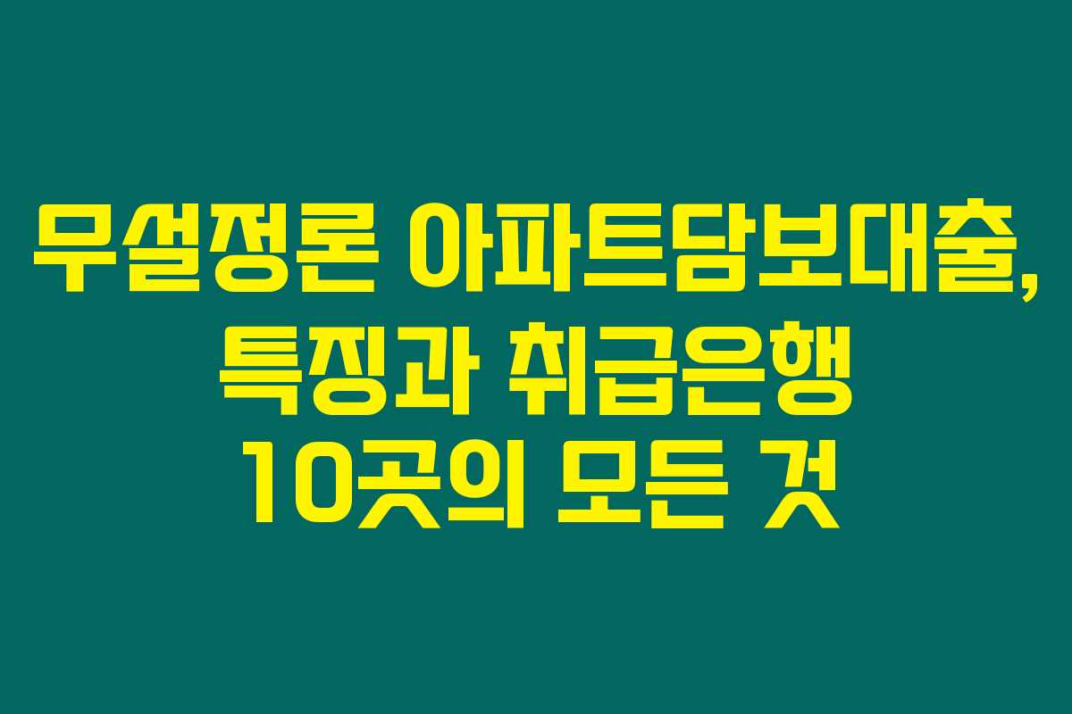 제가 직접 리서치해본 바로는 무설정론 아파트담보대출은 기존의 주택담보대출과 다른 매우 유연한 금융 옵션입니다. 이 대출 상품은 아파트를 담보로 제공하지만, 근저당 설정 없이도 받을 수 있어 대출 과정을 간소화합니다. 아래를 읽어보시면 무설정론의 주요 특징, 금리, 취급은행에 대한 내용과 함께 유용한 정보를 알 수 있습니다.