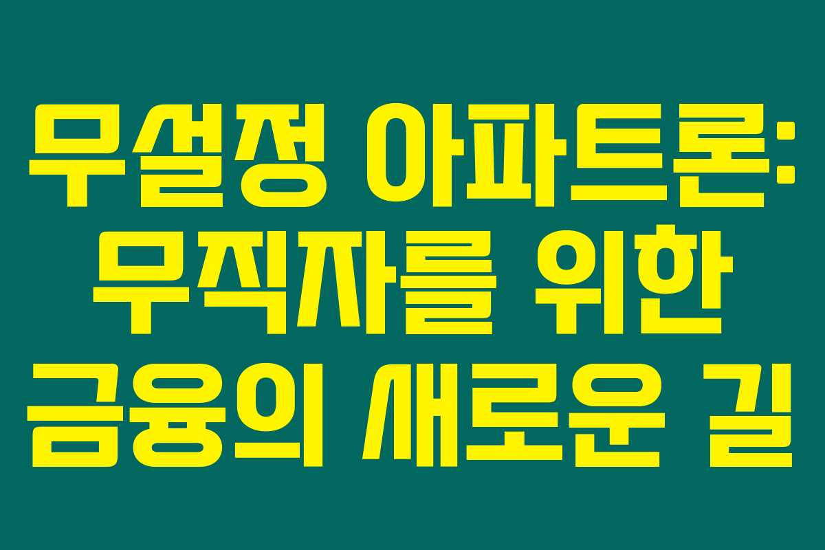 무설정 아파트론은 무직자에게는 좋은 대안이 될 수 있지만, 금리와 조건을 잘 따져봐야 하는 상품입니다. 본인의 상황에 맞는 금융 상품을 잘 선택하고, 맞춤형 상환 방법을 세우는 것이 중요하겠지요. 추가적인 정보가 필요하시면 언제든지 문의 주세요!