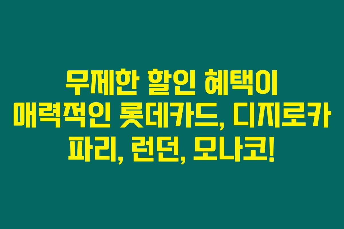 최근 전혀 실적 조건 없이 모든 가맹점에서 할인 혜택을 제공하는 신용카드가 있다는 사실, 알고 계셨나요? 바로 롯데카드의 디지로카 시리즈예요. 오늘은 이 카드의 다양한혜택을 살펴보고 어떤 카드가 본인에게 가장 알맞은지 알아보도록 할게요. 아래를 읽어보시면 더욱 매력적인 할인 혜택을 누릴 수 있는 방법이 담겨 있어요.