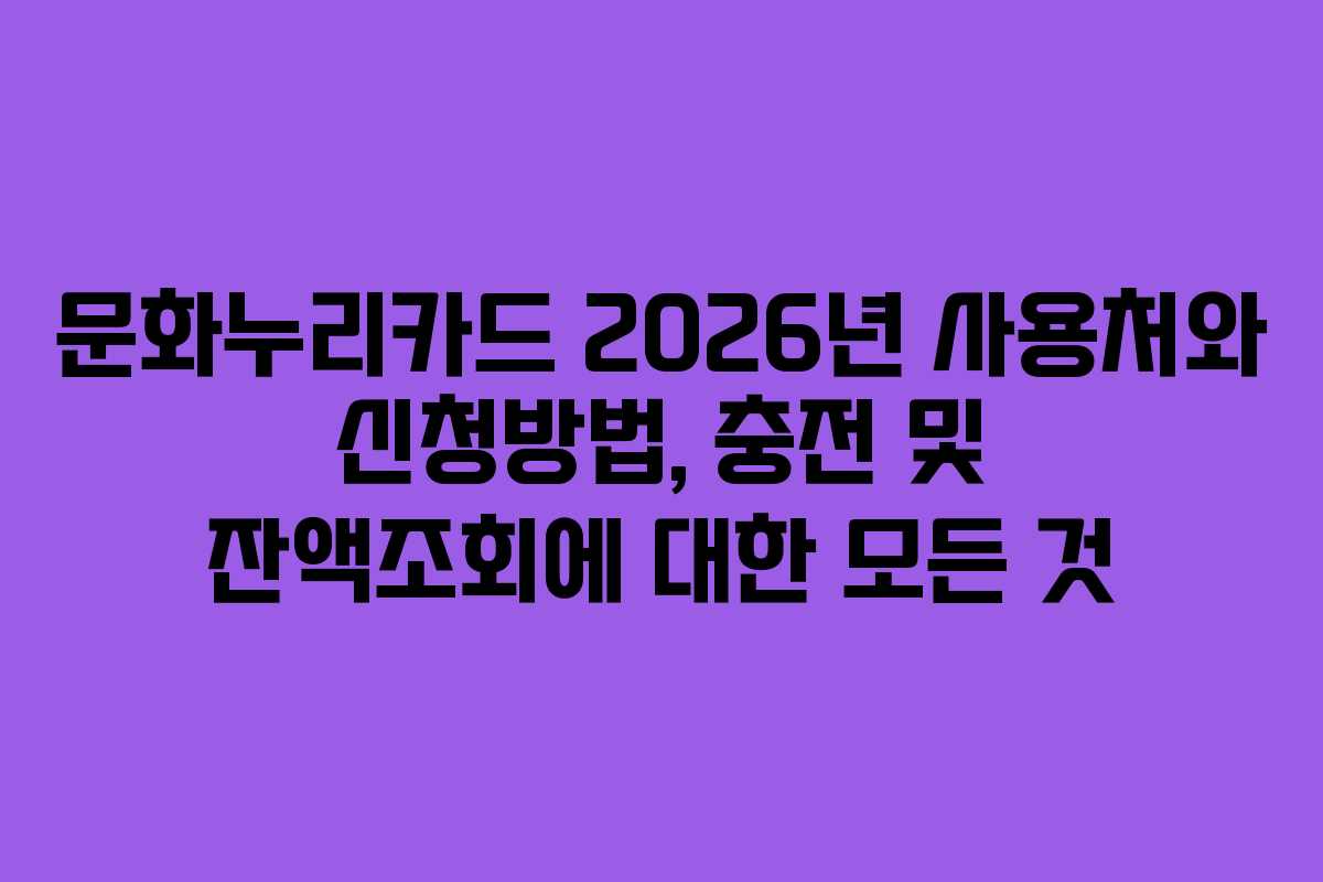 문화누리카드 2026년 사용처와 신청방법, 충전 및 잔액조회에 대한 모든 것