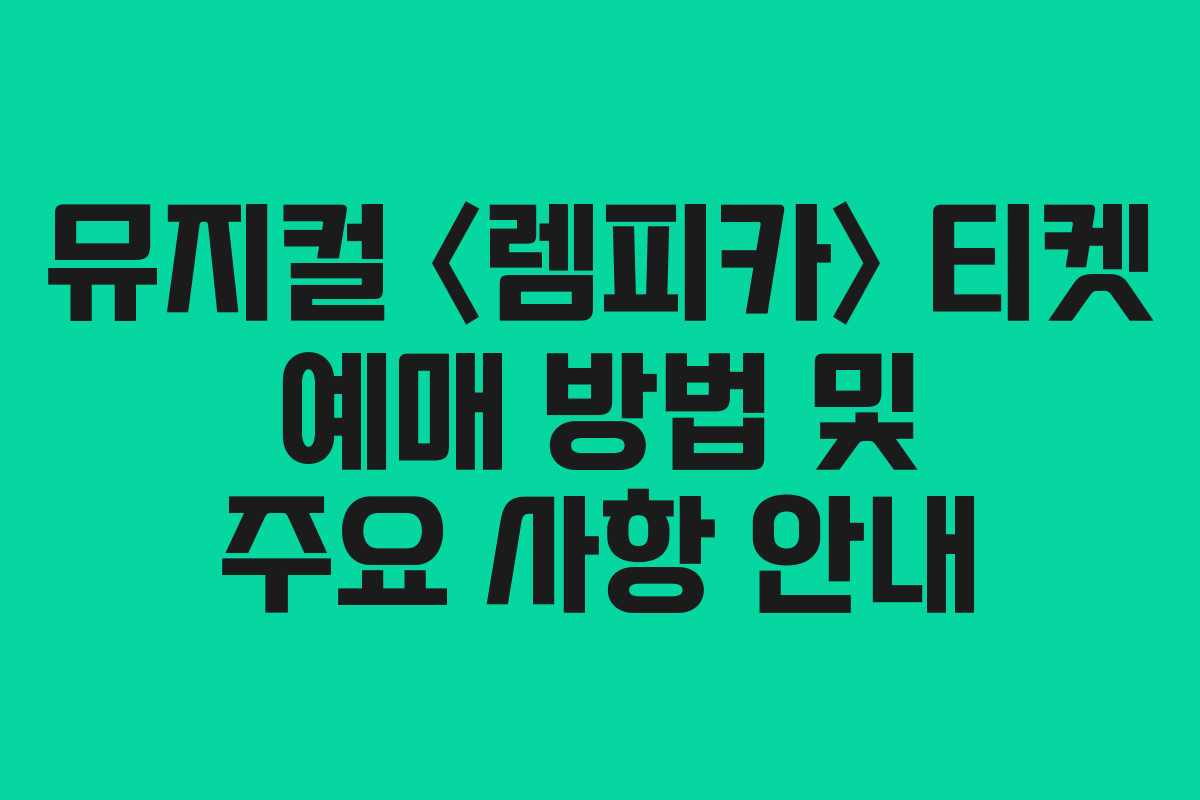 이번 뮤지컬 〈렘피카〉의 예매는 관객들에게 특별한 경험을 제공할 것으로 보이며, 예매 시 위 사항들을 충분히 고려하여 준비하길 바랍니다.