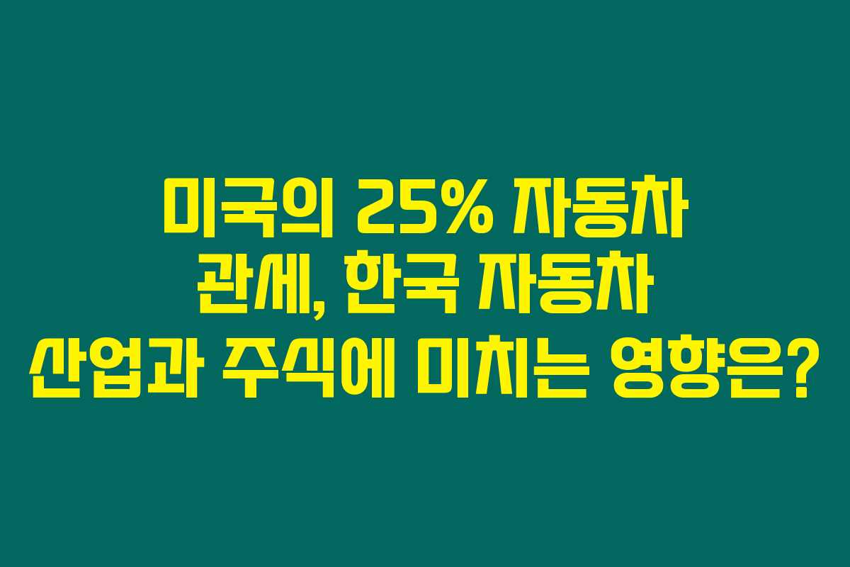 미국의 25% 자동차 관세, 한국 자동차 산업과 주식에 미치는 영향은?