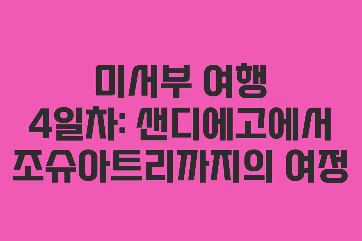 미서부 여행의 첫 도시인 샌디에고에서 큰 아쉬움을 느꼈습니다. 시차 적응에 실패하여 몸이 피곤했고, 비가 자주 내리는 날씨로 인해 계획했던 일정을 충분히 소화하지 못했습니다. 특히, 키즈프리 행사와 주말로 인해 교통체증과 주차난에 시달려야 했습니다.