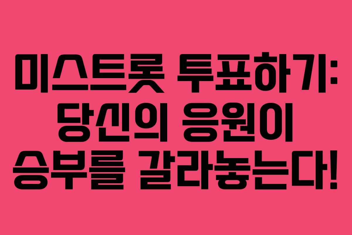 미스트롯 투표는 단순한 응원을 넘어, 프로그램의 역사에 기여하는 중요한 과정입니다. 여러분의 소중한 한 표가 누구의 꿈을 이루게 할지, 지금 바로 투표에 참여해보세요!