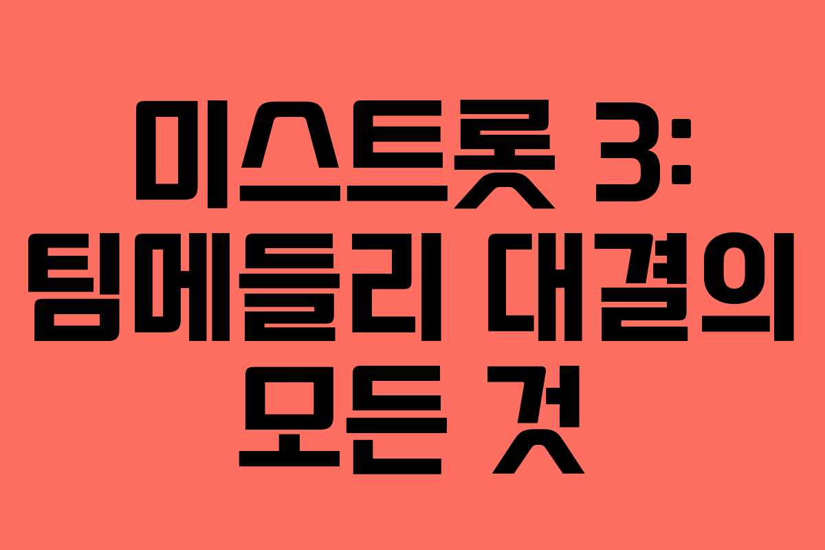 미스트롯 3는 팀메들리 대결과 다양한 라운드로 구성되어 있으며, 참가자들의 뛰어난 실력과 멘토링이 조화를 이룬 점이 주요 포인트입니다.