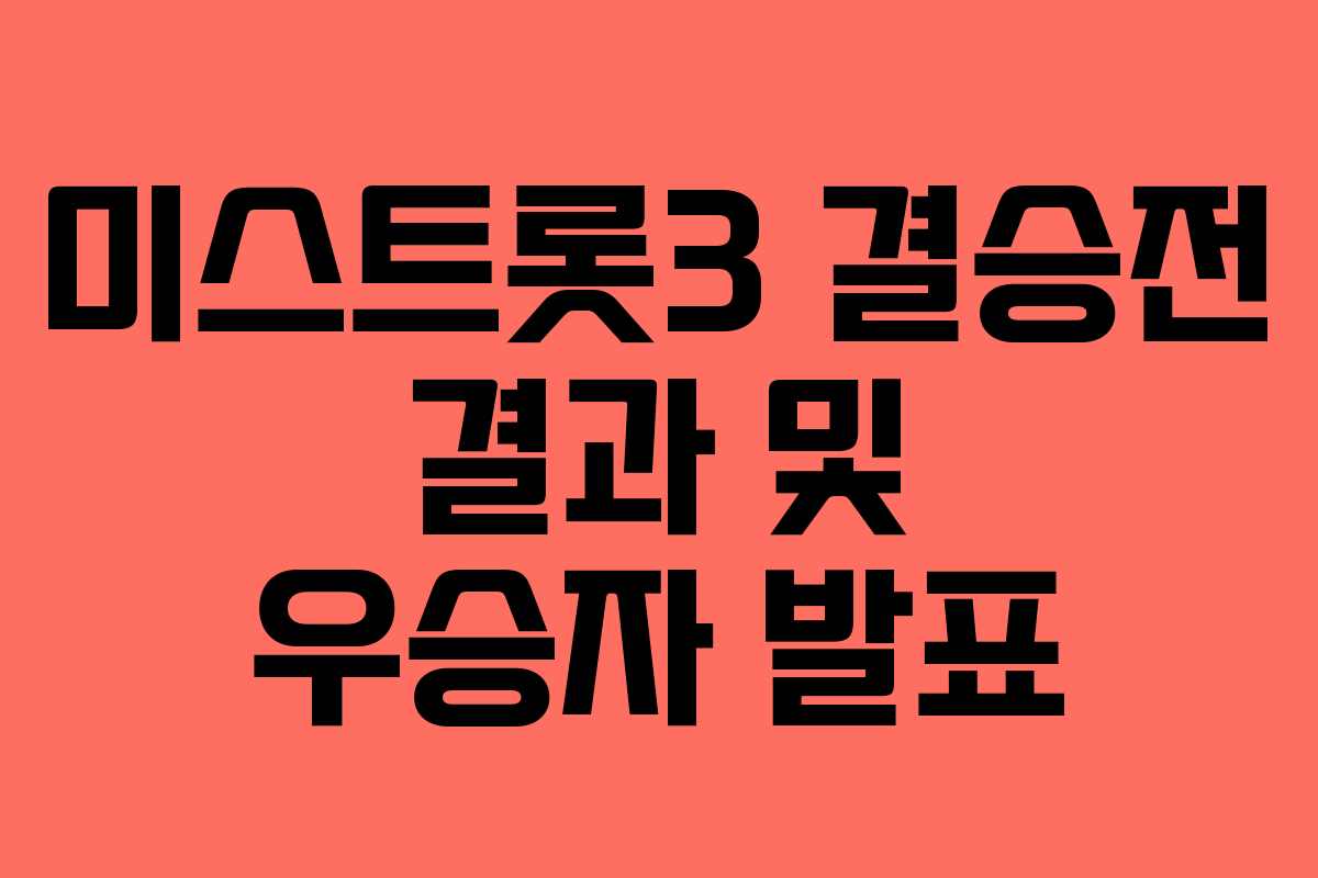 미스트롯3의 최종 결승전이 막을 내렸습니다. 약 3개월간 진행된 이번 시즌에서 송가인, 양지은의 뒤를 이을 제3대 진이 탄생했습니다. 결승전의 결과와 함께 점수 및 순위에 대해 자세히 알아보겠습니다.