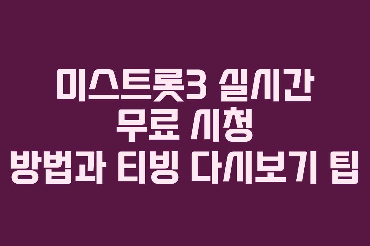 미스트롯3를 시청하고 싶지만 방법이 궁금하신가요? 이번 포스트에서는 실시간으로 미스트롯3를 무료로 시청하는 방법과, 티빙에서 다시 볼 수 있는 유용한 팁을 상세히 안내해드리겠습니다.