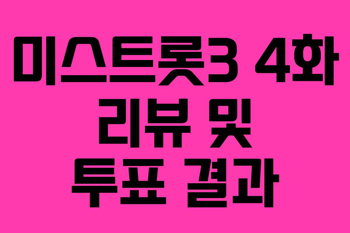 2024년 1월 11일 방영된 미스트롯3의 4화에서는 다양한 참가자들이 각자의 매력을 뽐내며 팀 미션을 통해 승부를 펼쳤습니다. 이번 회차는 시청자들에게 긴장감과 흥미를 동시에 선사하며, 각 팀의 노래와 퍼포먼스가 돋보인 시간이었습니다.