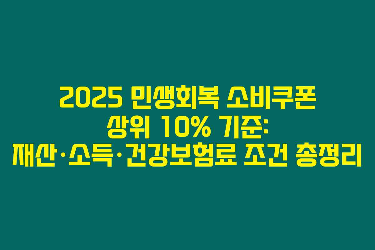 결론적으로, 2025년 민생회복 소비쿠폰은 건강보험료, 소득, 재산 조건에 따라 상위 10% 기준이 정해져요. 자신이 해당되는지를 알아보는 것이 정말 중요하니, 미리 준비하시길 바랍니다. 궁금하신 점이 있으시면 언제든지 댓글로 문의 주세요!