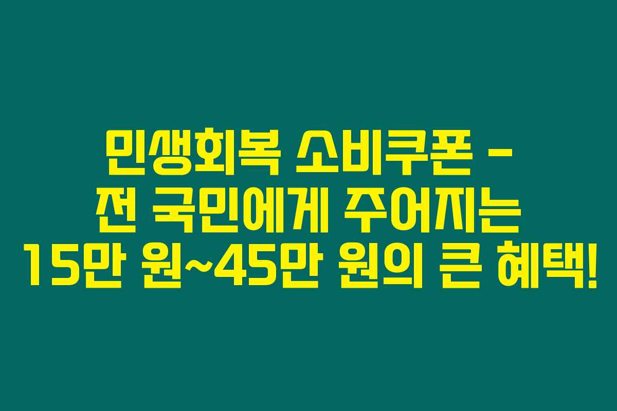 제가 알아본 바로는, 오는 7월 21일부터 정부에서 전 국민에게 최대 45만 원까지 지급되는 ‘민생회복 소비쿠폰’이 시행된다고 합니다. 이번 정책은 경기 회복과 지역 경제 활성화를 목표로 하고 있으며, 도움이 필요한 많은 사람들에게 필요한 지원이 될 것입니다. 아래를 읽어보시면 이 소비쿠폰에 대한 자세한 정보와 실질적으로 어떻게 활용할 수 있는지를 알게 되실 겁니다.