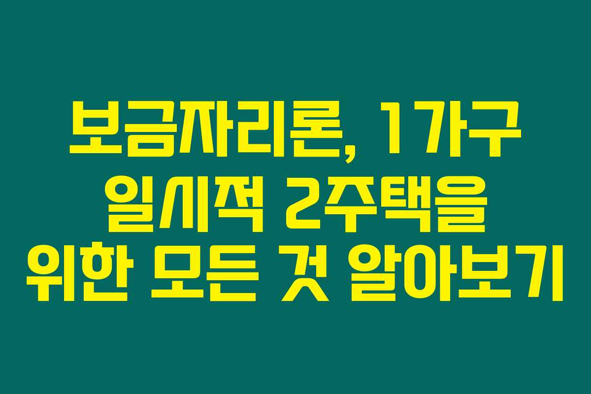제가 직접 리서치해본 바로는 보금자리론은 한국주택금융공사에서 운영하는 주택담보대출로, 경제적 부담을 줄이면서 안정적인 주택 구입이나 전세자금 마련에 도움을 줄 수 있는 좋은 대안입니다. 특히 1가구 일시적 2주택자의 경우, 대출 자격이나 조건이 좀 더 복잡할 수 있는데요. 아래를 읽어보시면, 보금자리론의 대출 자격, 소득 조건, 대출 한도 및 금리에 대해 자세히 알아보겠습니다.