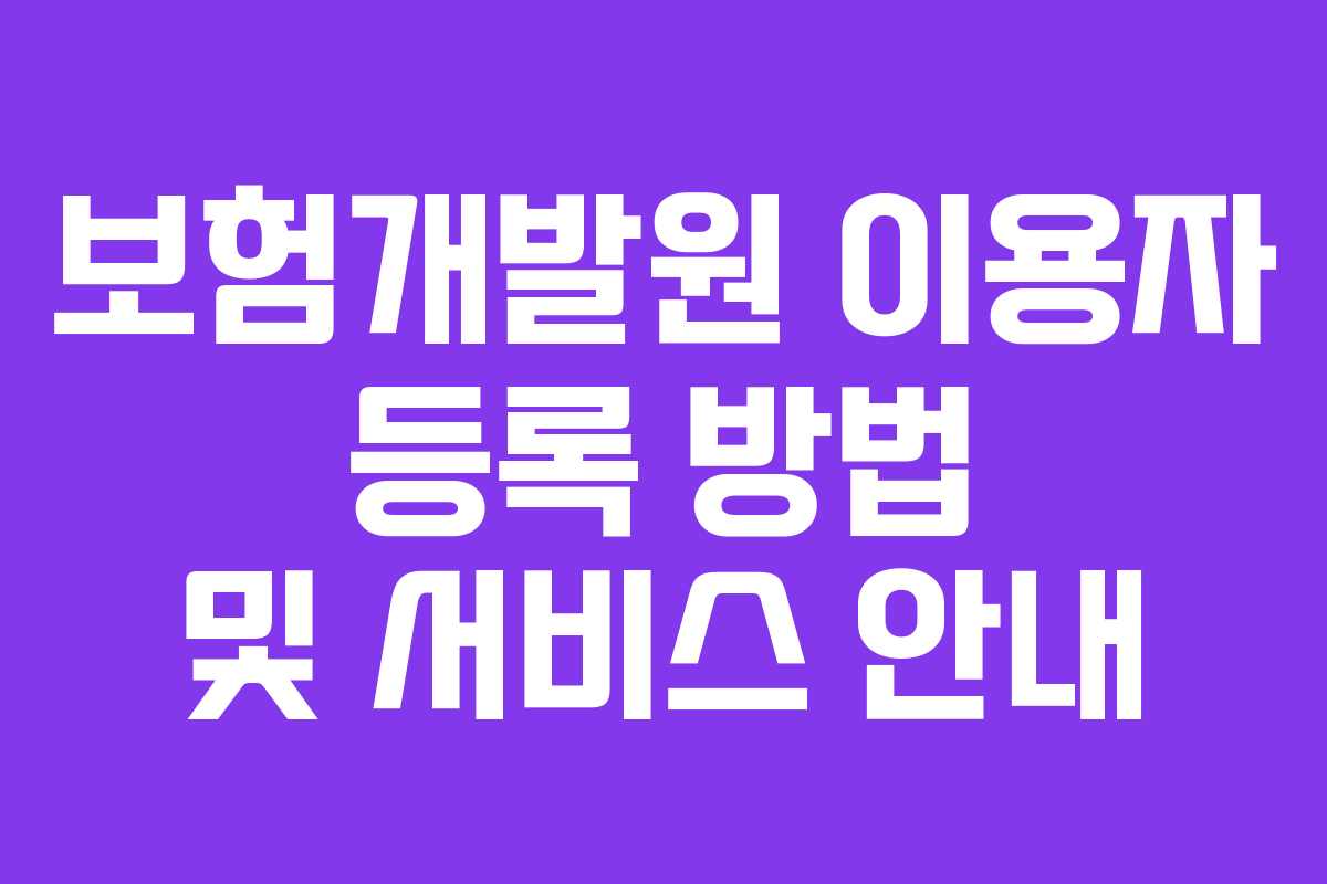 보험개발원은 보험소비자의 권익을 보호하고 보험산업의 발전을 도모하기 위해 설립된 전문 서비스 기관입니다. 이용자 등록을 통해 다양한 서비스를 이용할 수 있으며, 이 글에서는 보험개발원 이용자 등록 방법과 제공되는 서비스에 대해 자세히 알아보겠습니다.