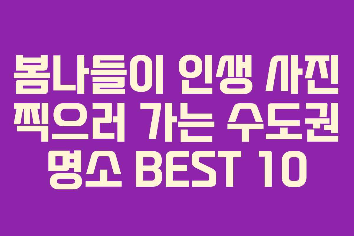 2026년 봄, 수도권에서 인생 사진을 남기기에 최적의 장소들을 소개합니다. 아름다운 봄꽃과 독특한 풍경이 어우러진 이곳들은 모두 봄나들이를 계획하는 분들에게 추천할 만한 명소입니다. 벚꽃, 진달래, 매화 등 다양한 꽃들이 만개하는 시기를 맞아, 사진 찍기 좋은 장소들을 자세히 안내하겠습니다.