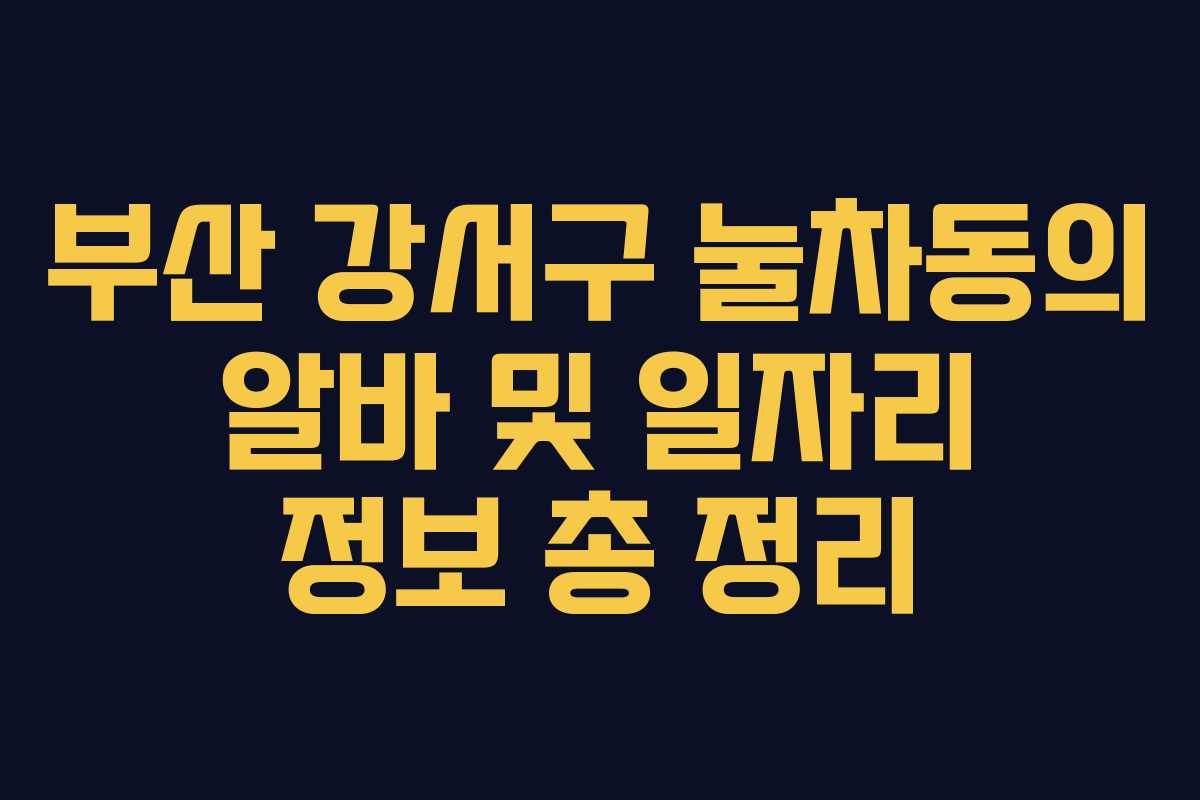 Q1: 부산 강서구 눌차동에서 일자리를 찾는 방법은 무엇인가요?