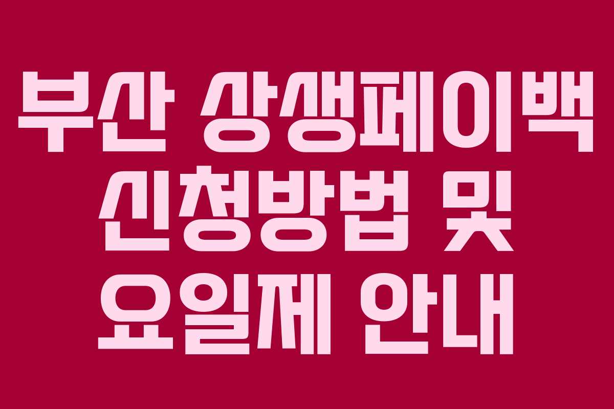 부산 상생페이백은 고물가와 경기 침체 속에서 시민들의 가계 부담을 덜어주기 위한 정책으로, 지역 내 소비를 촉진하여 소상공인에게 활력을 불어넣는 중요한 프로그램입니다. 이번 포스팅에서는 부산 상생페이백의 신청 기간, 요일제, 신청 방법 등을 자세히 안내하겠습니다.
