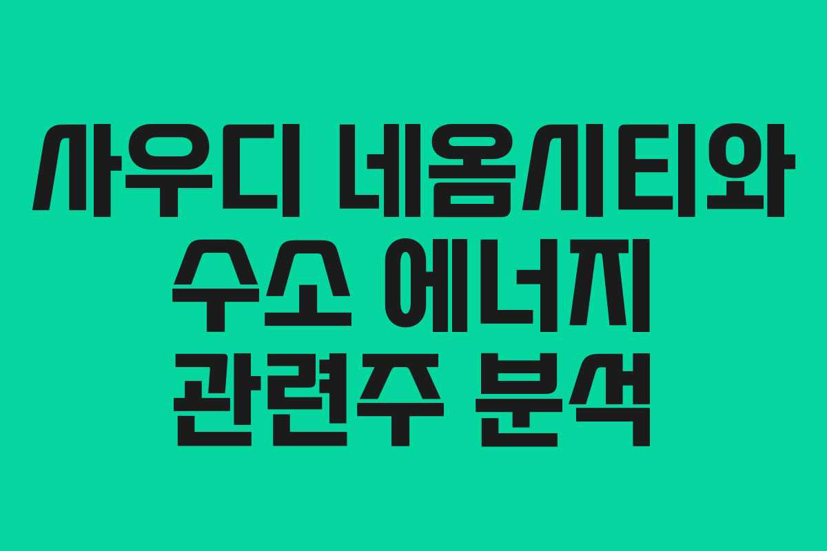 사우디 네옴시티와 수소 에너지 관련주 분석