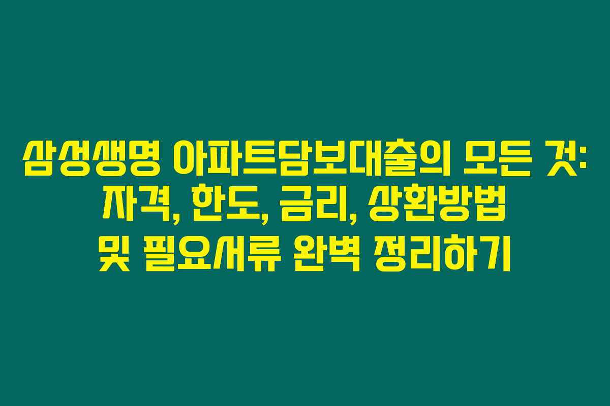 삼성생명 아파트담보대출은 아파트를 담보로 장기 자금을 마련할 수 있는 상품이에요. 다양한 상환 방식의 유연성과 조건이 좋다 보니 제법 많은 고객이 주목하고 있답니다. 아래를 읽어보시면 대출 자격부터 한도, 금리, 상환방법, 필요서류까지, 중요한 정보들을 정리했어요.