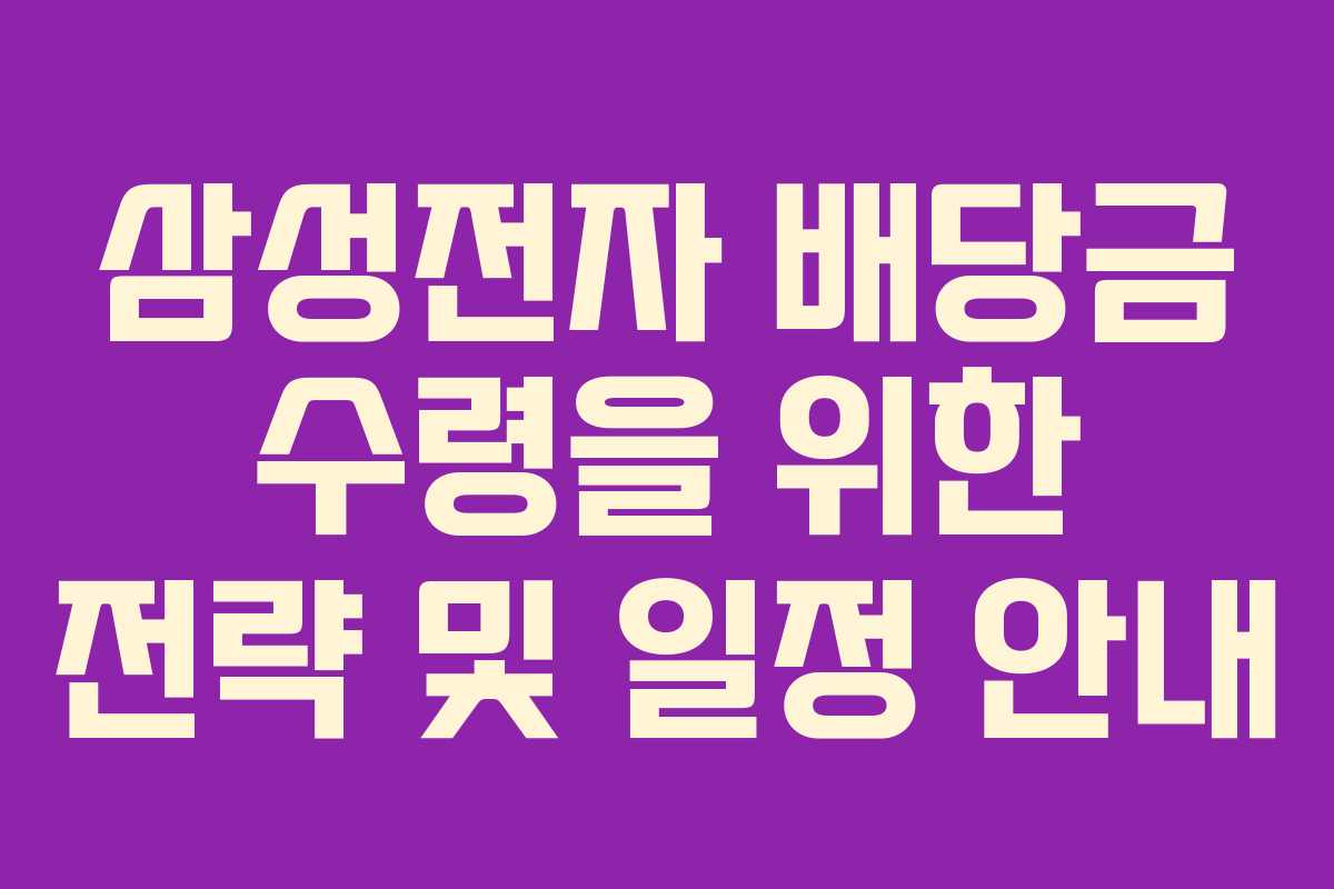 삼성전자의 배당금을 받기 위한 적절한 시점과 전략은 주식 투자에 있어 매우 중요한 사항입니다. 2026년의 배당 관련 일정과 금액을 정확히 이해하고, 이를 바탕으로 투자 결정을 내리는 것이 필요합니다. 이번 글에서는 삼성전자의 배당금 수령을 위해 언제 주식을 사야 하는지, 배당 지급일과 금액 등 중요한 정보를 다루겠습니다.