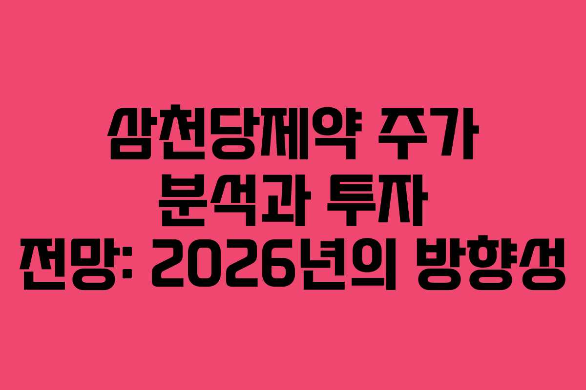 삼천당제약 주가 분석과 투자 전망: 2026년의 방향성