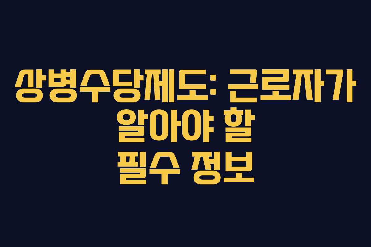 상병수당제도는 질병이나 부상으로 인해 근로자가 일을 하지 못할 때 정부가 지원하는 제도로, 근로자와 사업자 모두에게 꼭 필요한 정보입니다. 이 제도는 근로자가 건강 문제로 인해 경제적 어려움을 겪지 않고 치료에 집중할 수 있도록 돕습니다.