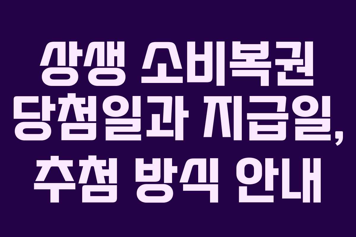 상생 소비복권은 전통시장 및 소상공인을 지원하기 위한 이벤트로, 소비자들에게 다양한 혜택을 제공합니다. 이번 글에서는 상생 소비복권의 당첨일, 지급일, 그리고 추첨 방식에 대해 알아보겠습니다.