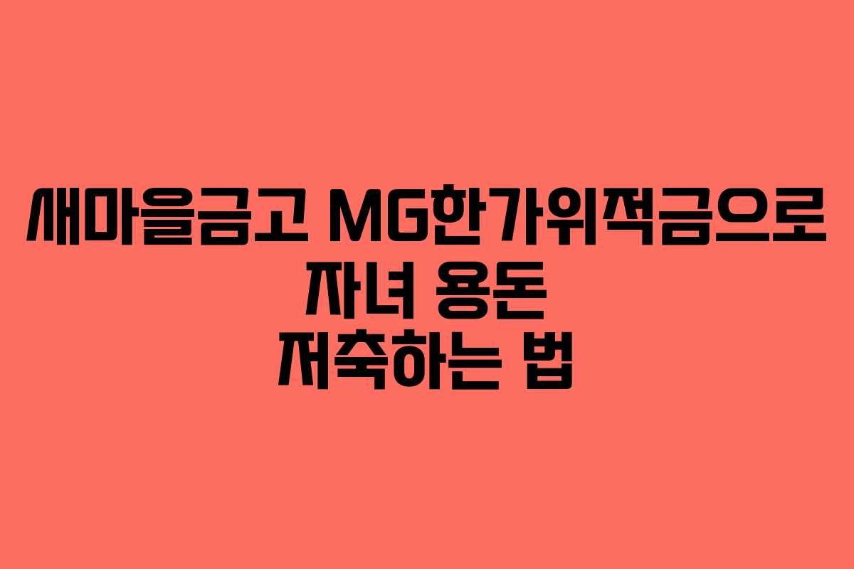 새마을금고의 MG한가위적금은 자녀들의 용돈을 저축하기에 적합한 상품입니다. 2026년 기준, 이 적금은 9%의 높은 금리로 미성년자들에게 제공되며, 부모가 가입을 도와줄 수 있습니다. 이번 글에서는 MG한가위적금의 자세한 정보와 가입 시 유의사항을 살펴보겠습니다.