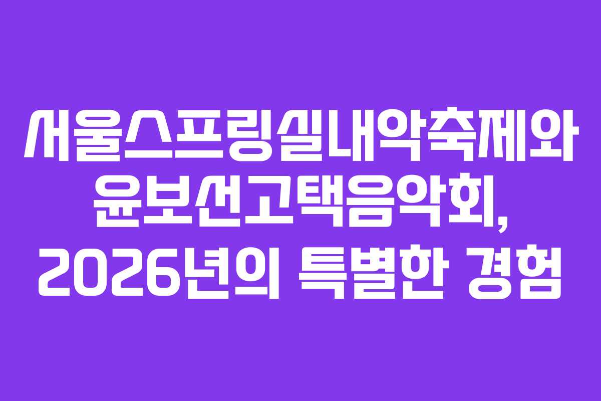 2026년 서울스프링실내악축제는 클래식 음악을 사랑하는 이들에게 특별한 경험을 선사할 예정이다. 윤보선고택에서의 음악회는 그 자체로 많은 감동을 줄 것이며, 각종 프로그램과 이벤트가 관객들을 기다리고 있다. 이 특별한 순간을 놓치지 말고 꼭 참석하여 잊지 못할 추억을 만들어보자.