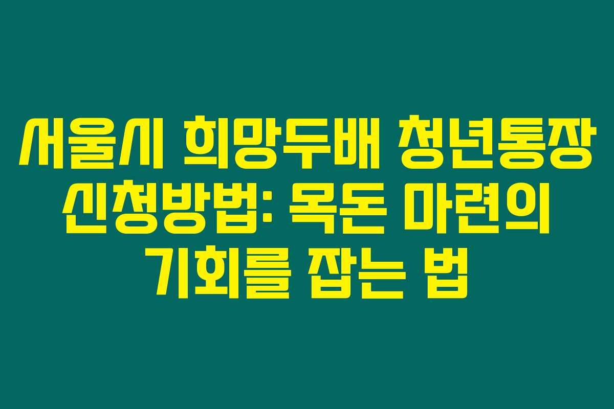 청년들의 경제적 자립을 지원하는 서울시 희망두배 청년통장! 필수조건과 서류를 잘 챙기고, 꿈을 향해 한 걸음 더 나아가는 기회가 되길 바랍니다. 여러분도 힘내세요!