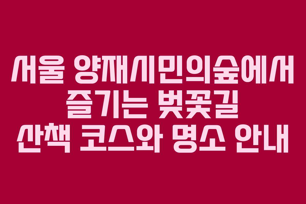 서울 양재시민의숲에서 즐기는 벚꽃길 산책 코스와 명소 안내