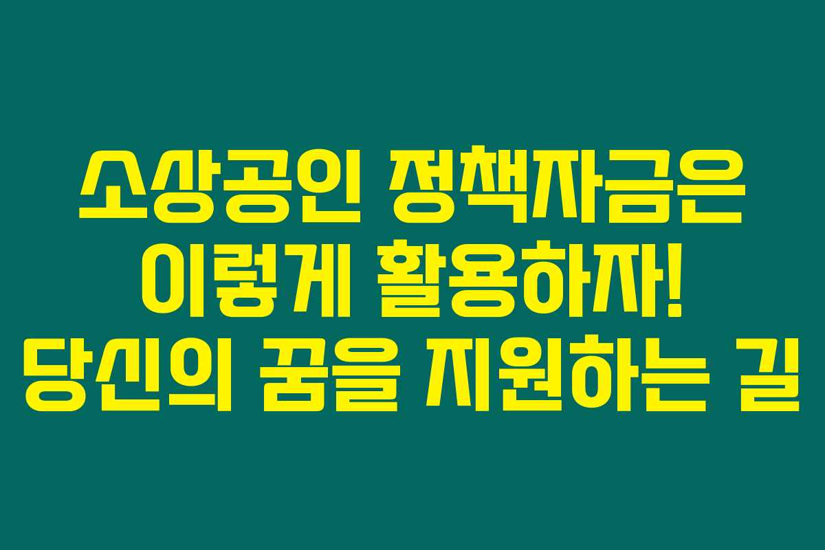 소상공인 정책자금은 이렇게 활용하자! 당신의 꿈을 지원하는 길