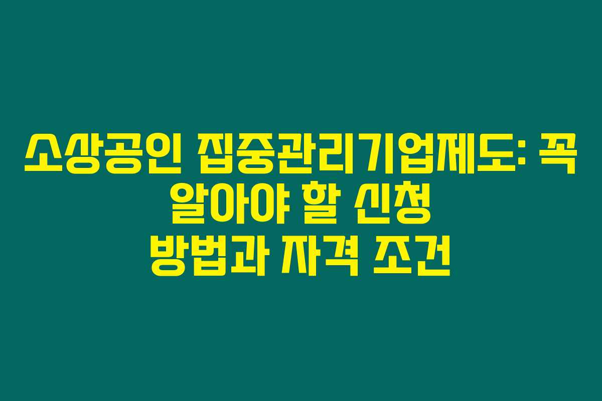 소상공인 집중관리기업제도 신청 자격은 여러 조건을 갖춰야 합니다. 제가 알아본 바로는 다음과 같습니다: