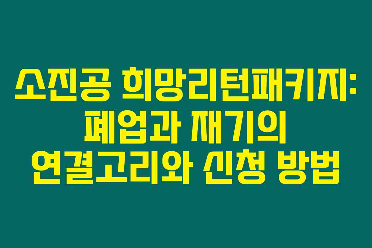 제가 알아본 바로는, 소상공인들이 폐업이라는 어려운 상황에 처했을 때, 소진공 희망리턴패키지는 그들의 재기를 응원하고 지원하기 위한 아주 중요한 정책입니다. 이 패키지는 폐업 절차부터 시작해 재취업, 재창업까지, 소상공인들에게 많은 도움을 줍니다. 아래를 읽어보시면 이 패키지의 구체적인 내용과 신청 방법에 대해 자세히 알 수 있을 것입니다.