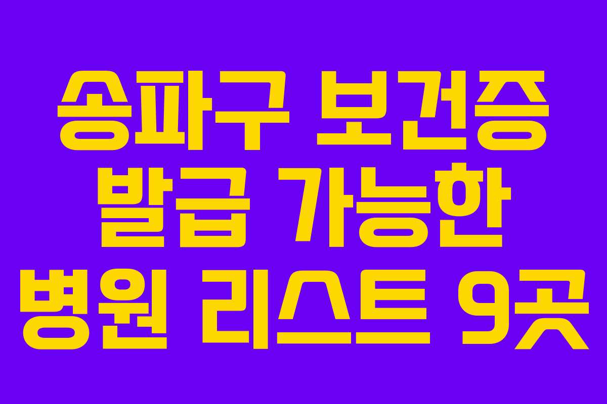 송파구에서 보건증을 발급받을 수 있는 병원은 다음과 같습니다: