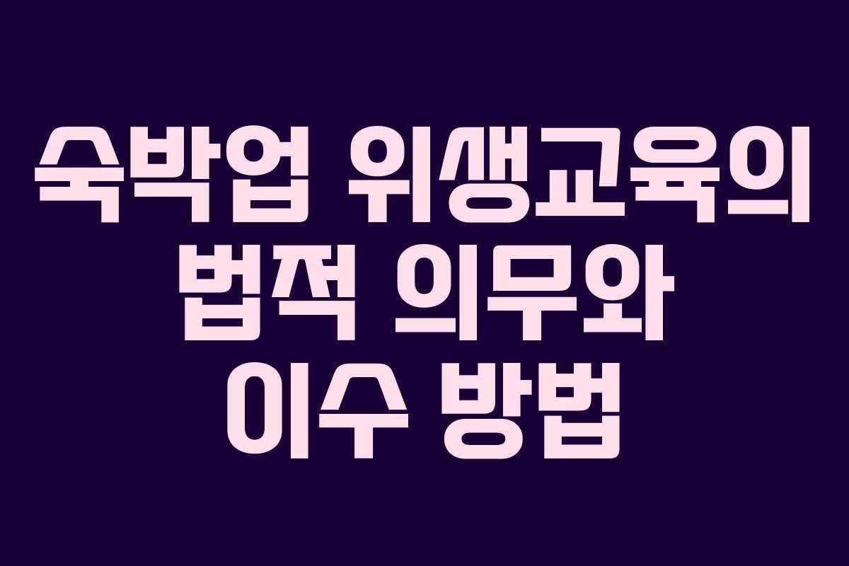 숙박업 위생교육은 공중위생관리법에 따라 모든 숙박업 종사자를 대상으로 합니다. 이 법은 숙박업체가 위생 관리 기준을 준수하도록 의무화하고 있습니다.