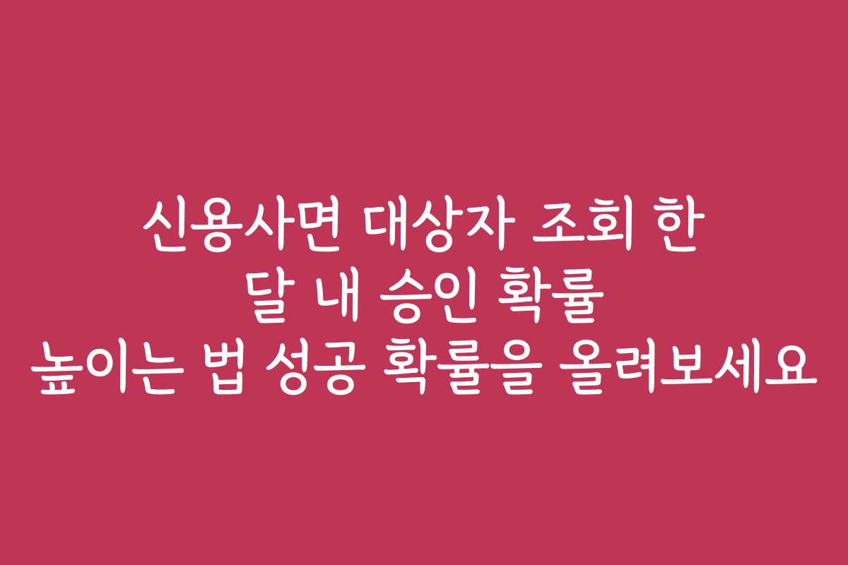 신용사면 신청 후 한 달이 지나도 승인 여부가 불확실한 경우 많습니다. 승인 확률을 높이기 위해 필요한 정보와 팁을 제공하겠습니다. 신용사면 대상자 조회 한 달 내 승인 확률을 높이는 법을 알아보세요.