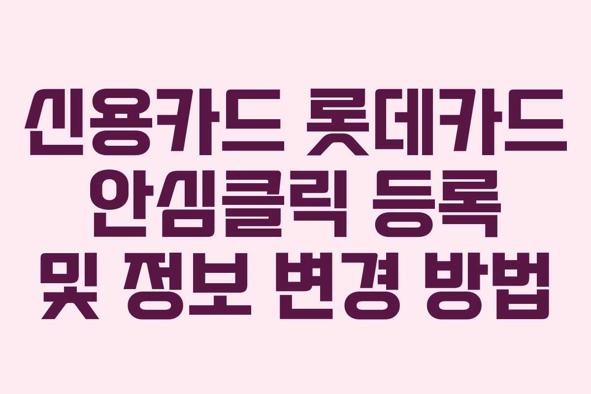 신용카드 결제 시 보안을 강화하기 위해 롯데카드의 안심클릭 서비스 등록 및 정보 변경 방법에 대해 자세히 설명하겠습니다. 이 서비스는 온라인 결제 시 발생할 수 있는 사고를 예방하는 데 도움을 줍니다.