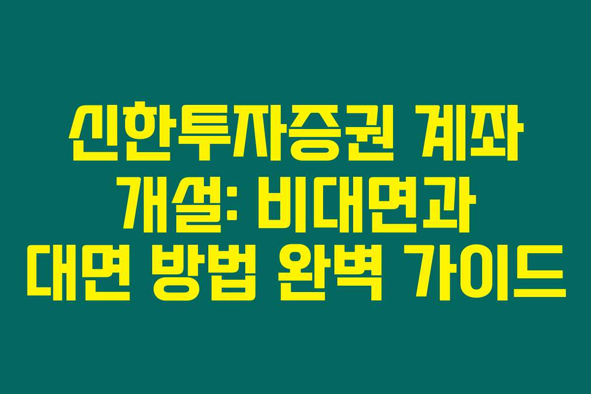 신한투자증권 계좌를 개설하는 방법은 크게 몇 가지로 나뉘는데요, 각 방법의 장단점과 절차를 자세히 알아보겠습니다.