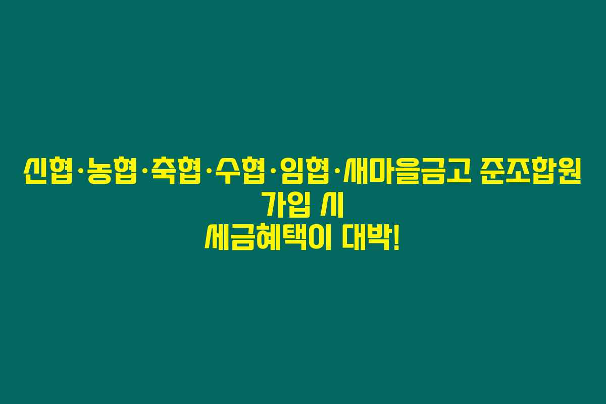 준조합원으로 가입하면 세금 드립을 줄일 수 있는 기회가 열립니다! 신협, 농협, 축협, 수협, 임협, 새마을금고의 저율과세 혜택을 통해 이자소득세 부담을 덜어보세요. 아래를 읽어보시면 이 혜택의 진정한 매력을 알게 될 거예요!