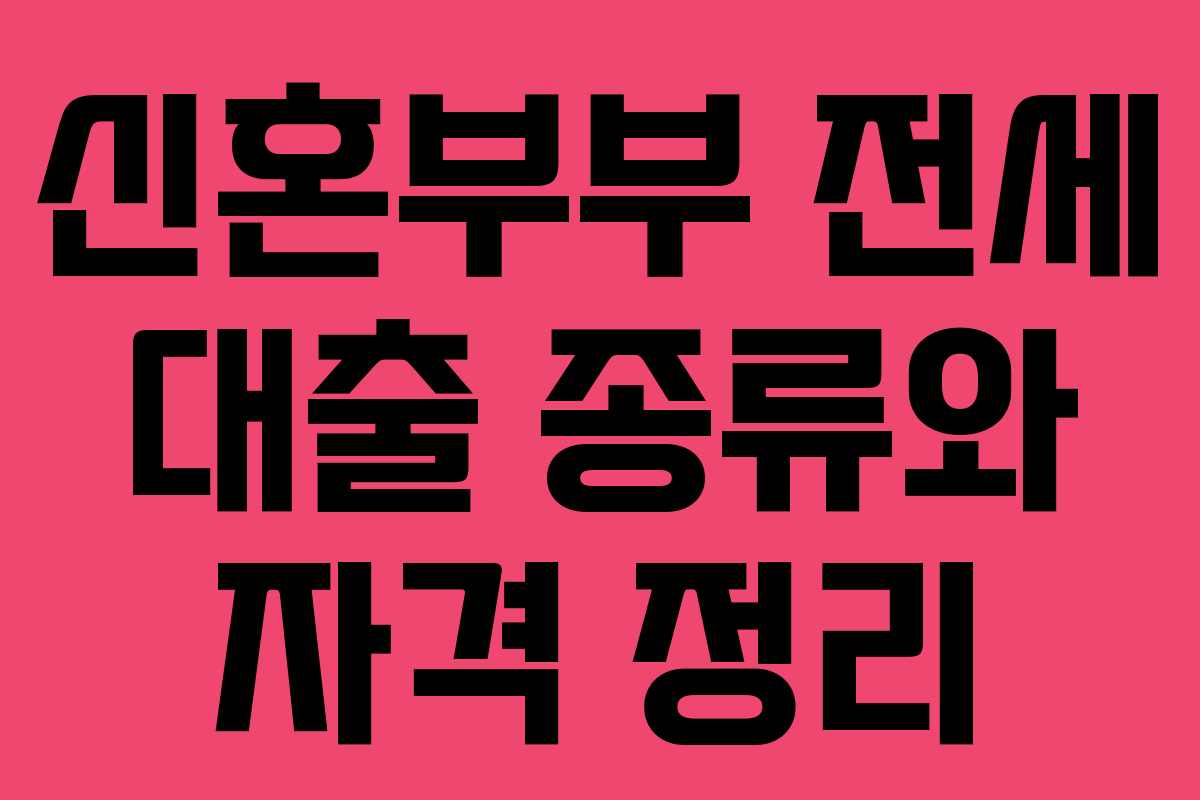 신혼부부가 전세 자금이 부족할 때 이용할 수 있는 전세 대출 상품은 여러 가지가 있습니다. 이 글에서는 신혼부부 전세 대출의 종류와 자격 요건을 간단하고 명확하게 정리해 보겠습니다.