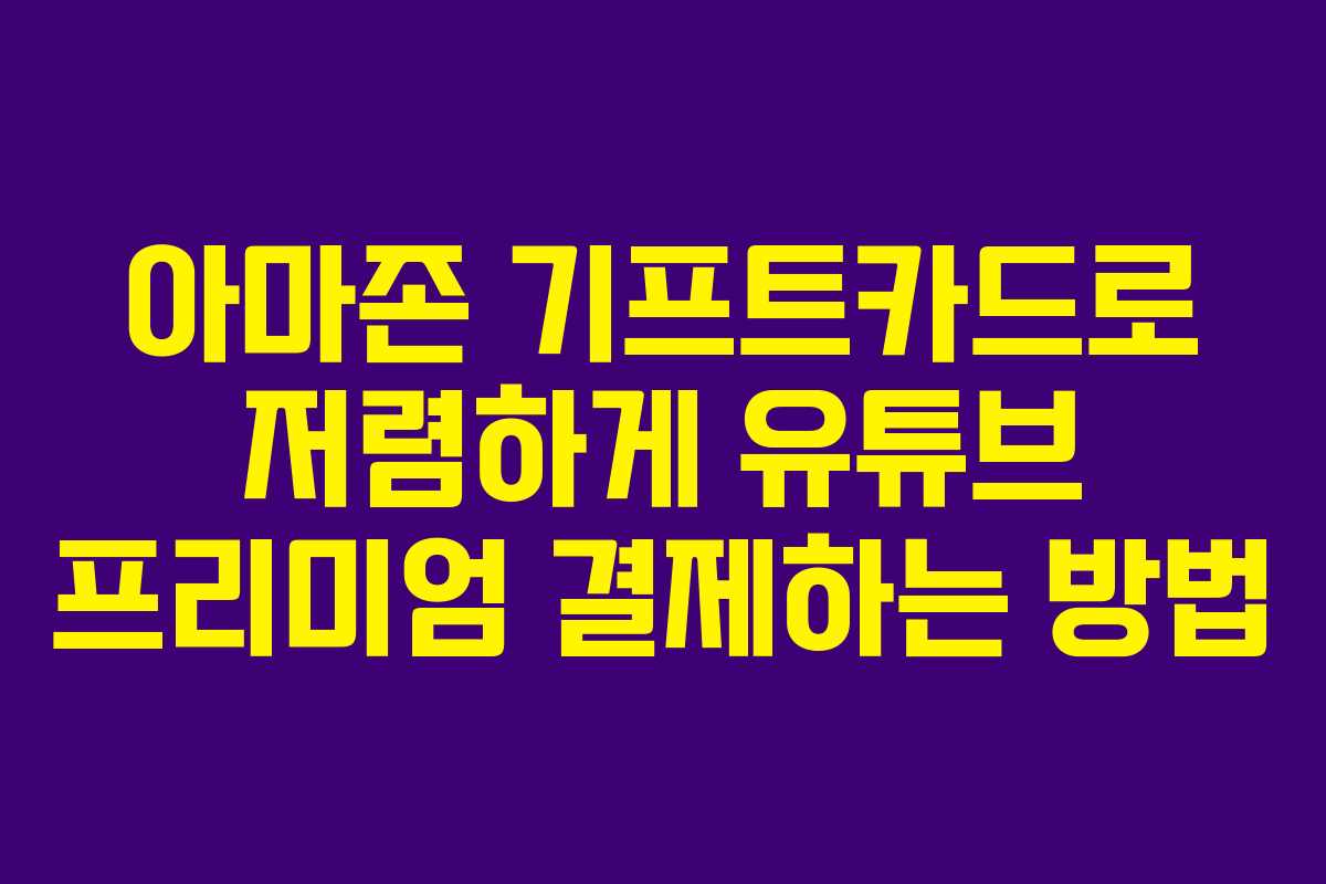 유튜브 프리미엄을 구독하는 데 드는 비용이 부담스럽다고 느끼는 분들이 많습니다. 광고 없는 감상과 다양한 콘텐츠를 즐길 수 있는 장점이 있지만, 비용이 만만치 않죠. 이번에는 아마존 기프트카드를 이용해 유튜브 프리미엄을 저렴하게 결제하는 방법을 소개하겠습니다. 아마존 기프트카드를 활용하면 할인 혜택도 누릴 수 있습니다.