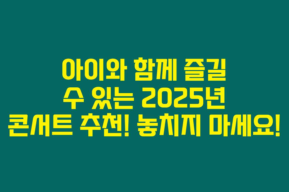 아이들과 함께하는 음악의 시간이 이보다 더 특별할 수 없죠! 2025년에는 다양한 콘서트에서 잊지 못할 추억을 만들어보세요. 가족 모두가 행복한 시간을 보낼 수 있을 거에요!🎶💕
