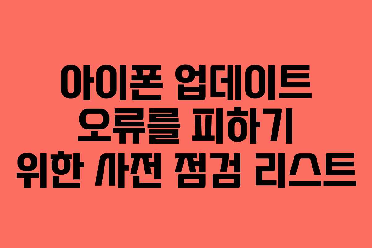 아이폰을 업데이트할 때 발생할 수 있는 오류는 많은 사용자에게 스트레스를 주는 요소입니다. 얼마 전, 제 지인이 업데이트를 시도하다가 데이터 손실을 겪으면서 큰 어려움을 겪은 적이 있습니다. 이를 통해 아이폰 업데이트를 하기 전의 준비가 얼마나 중요한지 깨달았습니다. 그래서 이번 포스트에서는 아이폰 업데이트 오류를 피하기 위한 사전 점검 리스트를 준비했습니다. 이 글을 참고하시면 걱정 없이 업데이트를 진행할 수 있을 것입니다.