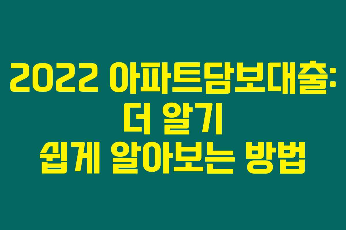 이런 정보를 바탕으로 2022 아파트담보대출에 대해 잘 이해하시길 바라며, 필요한 자금을 효율적으로 확보하실 수 있기를 바랍니다. 추가로 궁금한 점이 있다면 언제든지 댓글 남겨주세요!