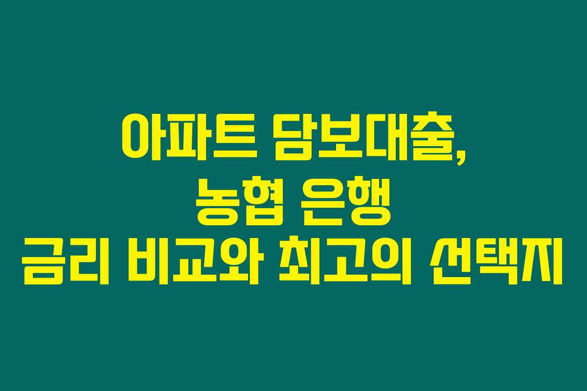 아파트 담보대출 금리는 은행별로 상이하니 아래의 표를 통해 확인해보세요. 제가 리서치한 결과에 따르면, 농협은행은 금리 측면에서 경쟁력 있는 조건을 제공합니다.