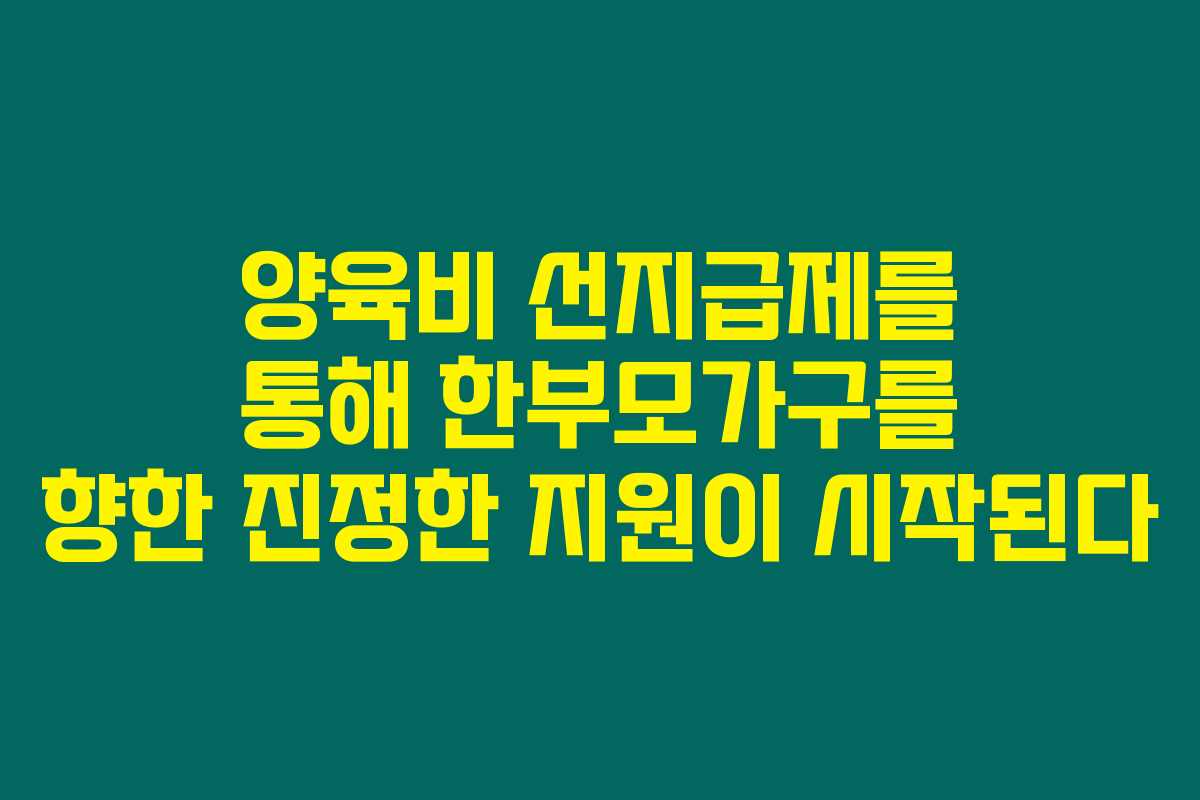 제가 알아본 바로는, 정부가 도입한 양육비 선지급제는 한부모가구의 경제적 안정을 위한 혁신적 조치입니다. 이 제도는 국가가 양육비를 선지급하고 나중에 상대 부모에게 구상권을 행사하는 방식으로, 애초에 양육비 문제로 어려움을 겪고 있는 가구들에게 실질적인 도움을 제공합니다. 아래를 읽어보시면 이 제도가 어떻게 한부모가구에 영향을 미치고, 앞으로 어떤 변화를 가져올지를 알고 싶어지실 것입니다.