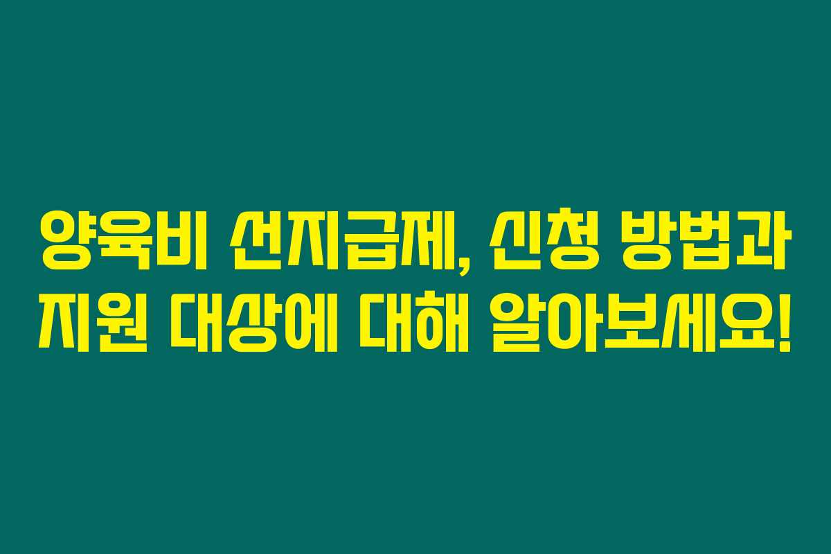 제가 직접 알아본 바로는 양육비 선지급제는 정부가 한부모 가정과 기타 양육자들이 자녀에게 제공해야 할 양육비를 먼저 지급하는 제도입니다. 특히 이 제도는 한부모 가정이 양육비를 받지 못할 경우 큰 도움이 됩니다. 아래를 읽어보시면 양육비 선지급제의 지원 대상, 신청 방법, 그리고 구비 서류에 대해 상세히 알아보실 수 있습니다.